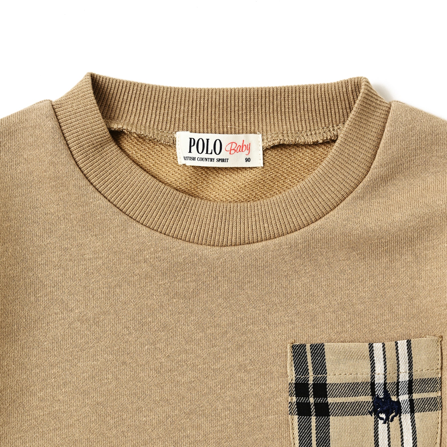 TC素材の裏毛長袖トレーナー。胸ポケットと裾にチェック生地を切り替えた遊び心あるデザインが魅力です。