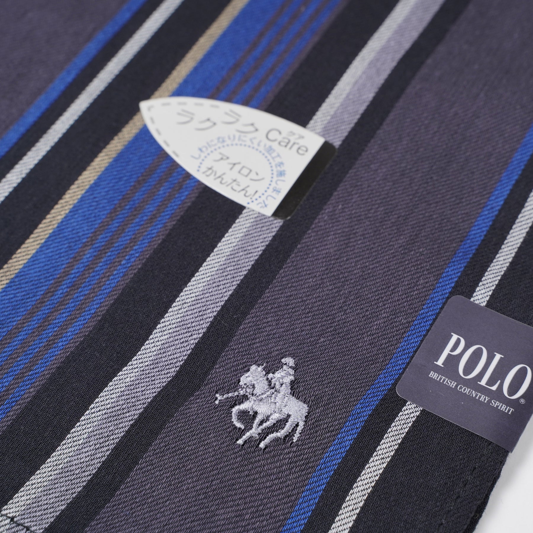 シックな色合いと上品なロゴが、ビジネスシーンやフォーマルな場にもぴったり。アイロンがけが簡単な仕様で、お手入れもラクラク。実用性とデザイン性を兼ね備えた一枚です。