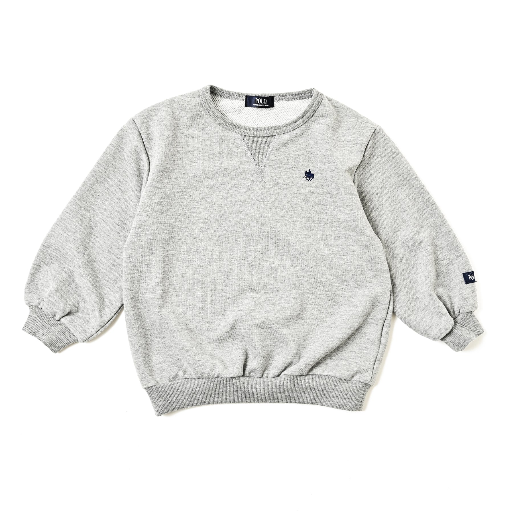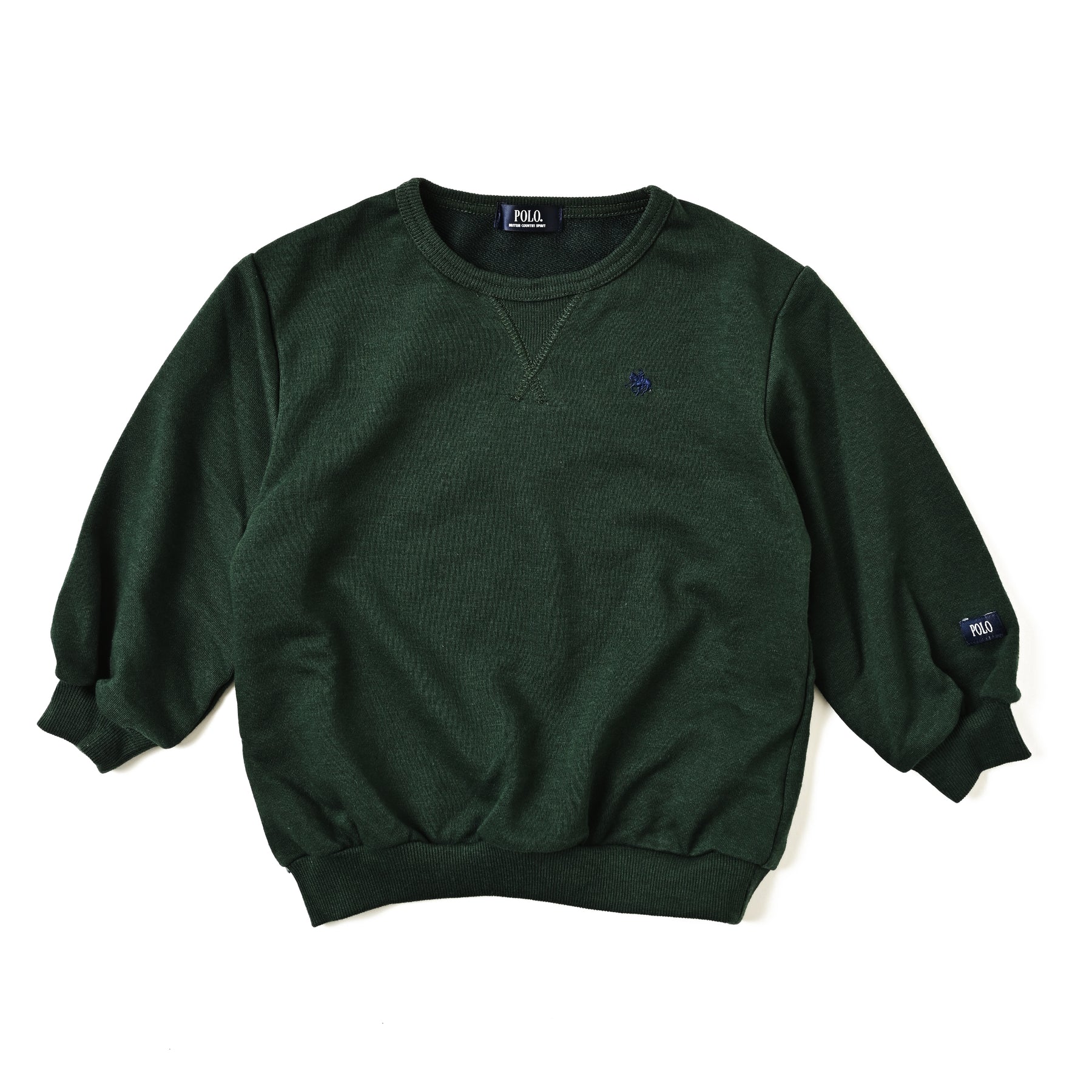 TC素材の裏毛長袖トレーナーは、胸元のワンポイント刺繍がさりげないアクセントに。